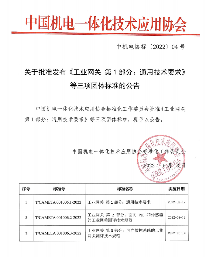 2022年5月13日,Z6COM人生就是博(中国)智通核心参编的工业网关标准,已正式顺利获得审批!将于2022年8月12日正式实施!